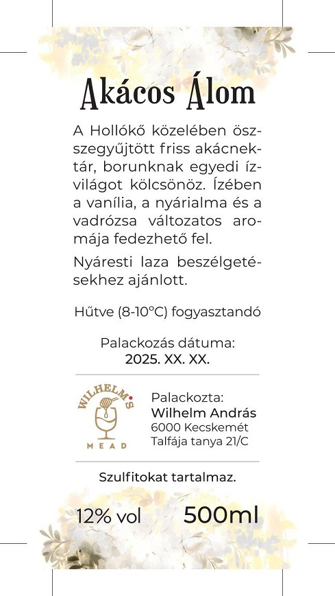 A Hollókő közelében összegyüjtött friss akácnektár, borunknak egyedi ízvilágot kölcsönöz. Ízében a vanília, a nyárialma és a vadrózsa változatos aromája fedezhető fel.